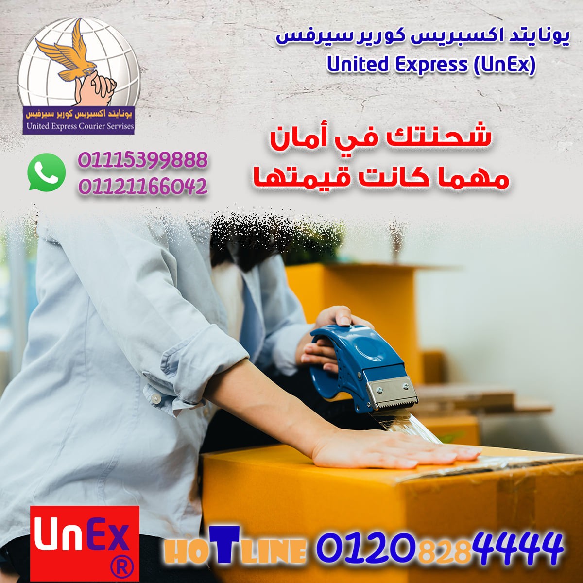 شركة يونايتد اكسبريس هي شركة مصرية تعمل في مجال البريد السـريـع والشحن بترخيص من الهيئة القومية للبريد - ترخيص رقم ( 42 ) رقم مختصر : 17166 والشركة لديها فروع فى جميع محافظات الجمهورية الشركة تقدم خدمة الشحن داخل القاهرة و جميع محافظات الجمهورية فى اسرع وقت فى مصر والشركة تمتلك أسطول سيارات يغطى جميع أنحاء الجمهورية من أقصاها إلى أقصاها. : جميع العاملين بالشركة وخاصة المندوبين ملتزمين بكل طرق الوقاية وخاصة التباعد الجسدى واستخدام الماسكات وخلافه .... -التغلف للشحنات القابلة للكسر مسئولية الراسل والشركة ليست مسئولة عن تلف المنتج بسبب التغليف - العميل الراسل مسئول مسئولية كاملة عن محتوى الشحنة أمام القانون المصري - التسليم : يتم التسليم فى القاهرة واسكندرية ومحافظات الدلتا ومدن القناة والصعيد تانى يوم عمل من الباب الى الباب فى خلال 24 ساعة -بعض القطاعات الرئيسية التي تقوم الشركه بخدمتها هي : -البنوك -شركات تداول الاوراق المالية -شركات التأمين -شركات الطيران وشركات السياحه -الهيئات والمؤسسات التنموية -التوكيلات الملاحية والعالمية -وكبري المؤسسات التجارية والصناعية المصرية والعالمية العاملة بمصر. -الشركه تقدم خدماتها 24 ساعه يوميا وعلي مدار العام فيما عدا الاعياد والعطلات الرسمية . -موقع الشركة : https://unitedexpresseg.com/ -البريد الالكترونى : info@unitedexpresseg.com unitedexpress67@gmail.com -الخط الساخن : 01208284444